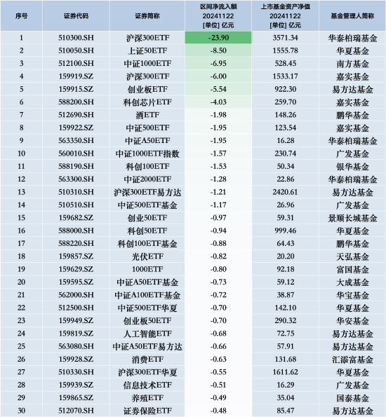 Wind数据清晰,11月22日,华泰柏瑞沪深300ETF遭净赎回23.90亿元,中原上证50ETF遭净赎回8.50亿元,南边中证1000ETF遭净赎回6.95亿元。一图看懂股票ETF净赎回TOP30名次榜>> ![]() ![]() 牵涉剪辑:江钰涵 |