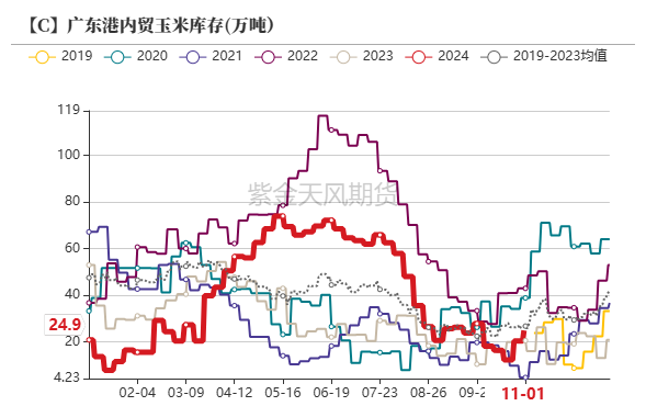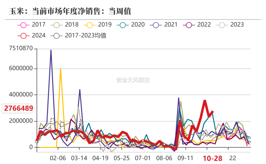 ![]() 起首:紫金天风期货扣问所 中枢不雅点:中性 11月9日,USDA预期乌克兰玉米新作产量预测为2620万吨,环比合手平,出口量为2300吨,环比合手平。上周巴西玉米主产区气温距平值偏高,中部地区降水与往年比拟变化不大,南部地区降水偏多。本周预测巴西玉米主产区气温依旧偏高,巴西南里奥格兰德州降水偏多,巴西中部玉米主产州马托格罗索州、帕拉纳州降水偏多。巴西24/25年度一茬玉米播撒率为42.1%,同比偏快。好意思国农业部发布的作物进展阐显著示,摈弃11月8日,好意思国玉米收货程度91%,上周为81%,客岁同时为78%。 上周玉米价钱各市集进展不一,东北及销区出现高涨,华北玉米价钱先涨后跌。东北地区周内暗淡天气出现,部分玉米水分升高,生意商老本撑合手下出货价钱小幅上调。华北地区玉米价钱保管先涨后跌的趋势,下层购销相对清淡,以潮粮购销为主,粮点收购基本无干粮。深加工企业门前到货量保管高位,但企业收购以潮粮为主,无法作念永恒库粗,多按需采购。市集购销保管动态均衡,价钱涨跌幅度有限。销区玉米市集价钱合座高涨后沉稳趋于赋闲。南边口岸报价随从北港及期货市集价钱变化,周末时辰至周初,价钱出现显著高涨。跟着期货市集盘整,南边口岸报价暂稳。 上周猪价合手续下行,跌幅扩大。供应端,西南及华南地区前期增紧要猪不时出栏;范畴场来看,为加速完成年度出猪谋略任务,部分企业有降重出栏操作;需求端,周内需求比拟前期连接增强,但受温度偏高,重复白条价钱走低、屠企走单不畅影响,企业开工率高涨幅度偏小。预测本周生猪市集供应端连接增量,需求无显著增量。深加工方面,玉米淀粉加工利润有所改善,玉米淀粉企业开机率环比环比上升,玉米阔绰量环比上升。后续要点温文深加工企业利润变化情况及开机变化情况。 空洞来看:上周玉米主力合约震憾偏弱运行,最低波及2193元/吨。一方面,深加工到车量合手续保管高位,供应宽松的情况下收购价钱合手续下行;另一方面,宏不雅计策尚无新的音讯设备,市集处于无显著利好状况,宏不雅心扉的稍微走弱齐会带来盘面的阶段性抛压。故空洞来看上周2501合约呈现震憾偏弱走势,本周需要点温文深加工企业收购价钱和下层上量情况,温文增量计策发布情况,温文后续下层售粮程度和天气变化情况。 产地情况:中性 11月9日,USDA预期乌克兰玉米新作产量预测为2620万吨,环比合手平,出口量为2300吨,环比合手平。上周巴西玉米主产区气温距平值偏高,中部地区降水与往年比拟变化不大,南部地区降水偏多。本周预测巴西玉米主产区气温依旧偏高,巴西南里奥格兰德州降水偏多,巴西中部玉米主产州马托格罗索州、帕拉纳州降水偏多。巴西24/25年度一茬玉米播撒率为42.1%,同比偏快。好意思国农业部发布的作物进展阐显著示,摈弃11月8日,好意思国玉米收货程度91%,上周为81%,客岁同时为78%。 国内供给:中性 上周玉米价钱各市集进展不一,东北及销区出现高涨,华北玉米价钱先涨后跌。东北地区周内暗淡天气出现,部分玉米水分升高,生意商老本撑合手下出货价钱小幅上调。华北地区玉米价钱保管先涨后跌的趋势,下层购销相对清淡,以潮粮购销为主,粮点收购基本无干粮。深加工企业门前到货量保管高位,但企业收购以潮粮为主,无法作念永恒库粗,多按需采购。市集购销保管动态均衡,价钱涨跌幅度有限。销区玉米市集价钱合座高涨后沉稳趋于赋闲。南边口岸报价随从北港及期货市集价钱变化,周末时辰至周初,价钱出现显著高涨。跟着期货市集盘整,南边口岸报价暂稳。 饲用需求:偏空 上周猪价合手续下行,跌幅扩大。供应端,西南及华南地区前期增紧要猪不时出栏;范畴场来看,为加速完成年度出猪谋略任务,部分企业有降重出栏操作;需求端,周内需求比拟前期连接增强,但受温度偏高,重复白条价钱走低、屠企走单不畅影响,企业开工率高涨幅度偏小。预测本周生猪市集供应端连接增量,需求无显著增量。 深加工需求:中性 深加工方面,玉米淀粉加工利润有所改善,玉米淀粉企业开机率环比环比上升,玉米阔绰量环比上升。后续要点温文深加工企业利润变化情况及开机变化情况。 替代品情况:偏多 替代品方面,上周小麦价钱变化不大,玉麦价差288元/吨,小麦替代玉米已无价钱上风。 天气情况:中性 预测本周11-12日内蒙古东北部、黑龙江、青海东部、甘肃河西和中南部等地,11-14日新疆北部部分地区有小到中雪,局地大到暴雪或大暴雪,对设施农业和畜牧业分娩不利。 外洋产地情况 USDA:好意思玉米11月供需证明 11月9日,USDA公布11月供需均衡证明,好意思玉米23/24年度旧作均衡表变化不大,只在国内消费里面作念了小边界改变。新作方面,2024/25年度好意思国玉米产量和期末库存下调。玉米产量预测为3.86亿吨,较上月下调154万吨,因为单产下调0.7蒲,至每英亩183.1蒲。玉米收货面积保合手不变,为3347万公顷。玉米总用量保合手不变,为3.21亿吨。由于供应下调且用量莫得变化,玉米期末库存下调至4923万吨。 证明合座偏利好新作,由于单产下调导致新作产量预期减少,另出门口依旧保管5906万吨的水平不变,并莫得因为出口中国数目减少而大幅下修,阐发好意思国依旧不错凭借其出口上风向除中外洋的其他国度出口可不雅数目的玉米,故意于其国内价钱踏实。 ![]() 好意思国:好意思玉米出口情况 11月8日当周,好意思国202